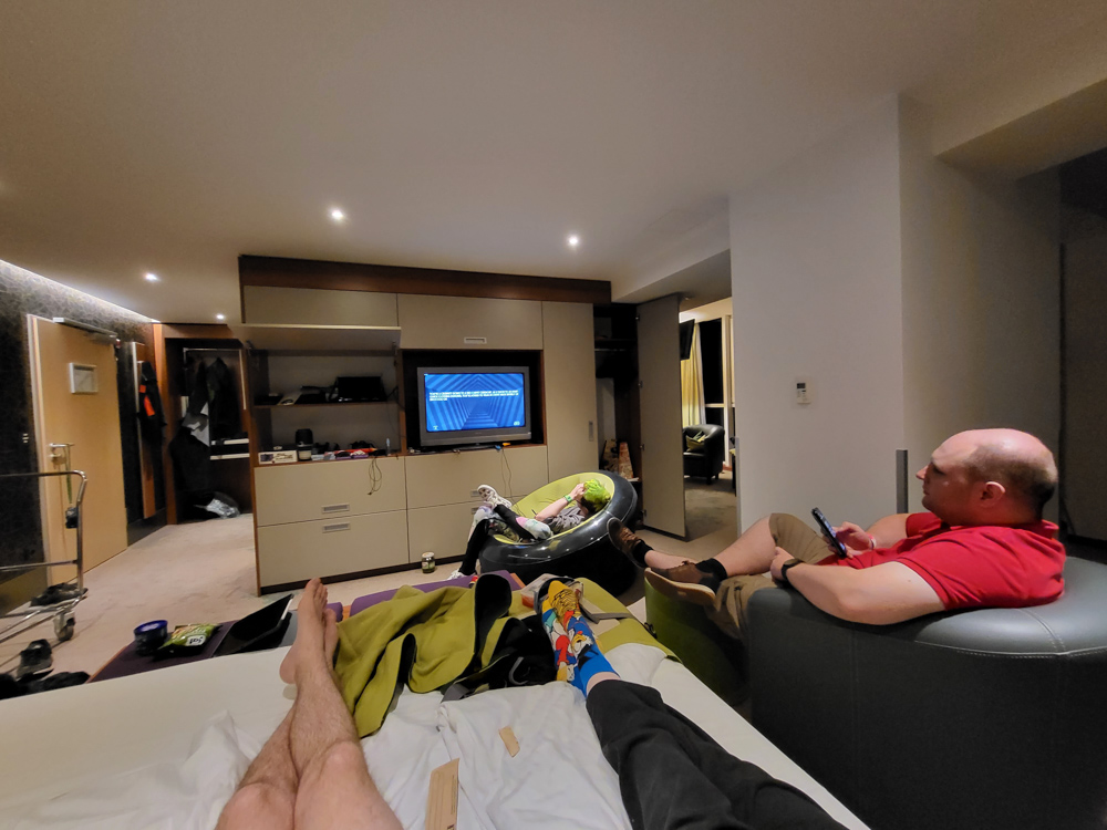 We left the pool at around 18:00 and hung out on the room a but, then we had some dinner in the lobby. Food this time was really nice and reasonably priced. After dinner we went to the game room. I played some Mario Kart Wii with Henrieke and we made some scans on an ancient scanner.