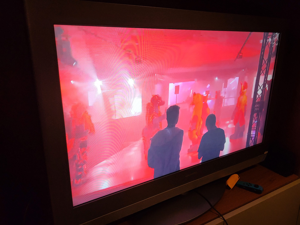After our game we all went to the pool, sadly it was really loud there, and Henrieke didn't really enjoy it. We went to our room soon after, Henrieke needed a while to rest. Yotie and Mag came over and we watched Krauti DJ a bit on the EAST TV channel. Later Mlice, Rakipu and Valdrec arrived. Also Luno and Hai. We played some Split the Room, Quiplash and Blather Round. They all left after, and I quickly jumped into Baseball. Baseball gave a quick hug to Luno and Hai, then went to BBF's dance!