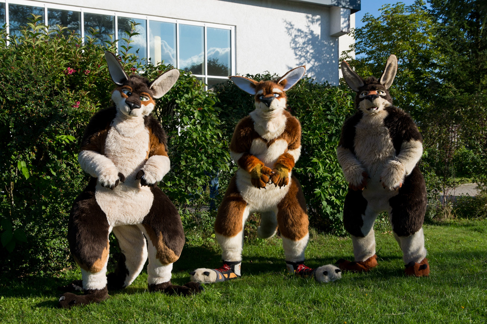 At 16:30, I went to Luno's room, since he offered me to be a kangaroo again. An offer I could not refuse! At 17:00, I (as Luno) went with down with Hai and Luno (wearing his painted dog) to the WildSpotWorks photoshoot. It was fairly warm, but everything went well! All 3 of Luno's kangaroo suits were there, with Yotie weating Hiero's and Shorty wearing his own.