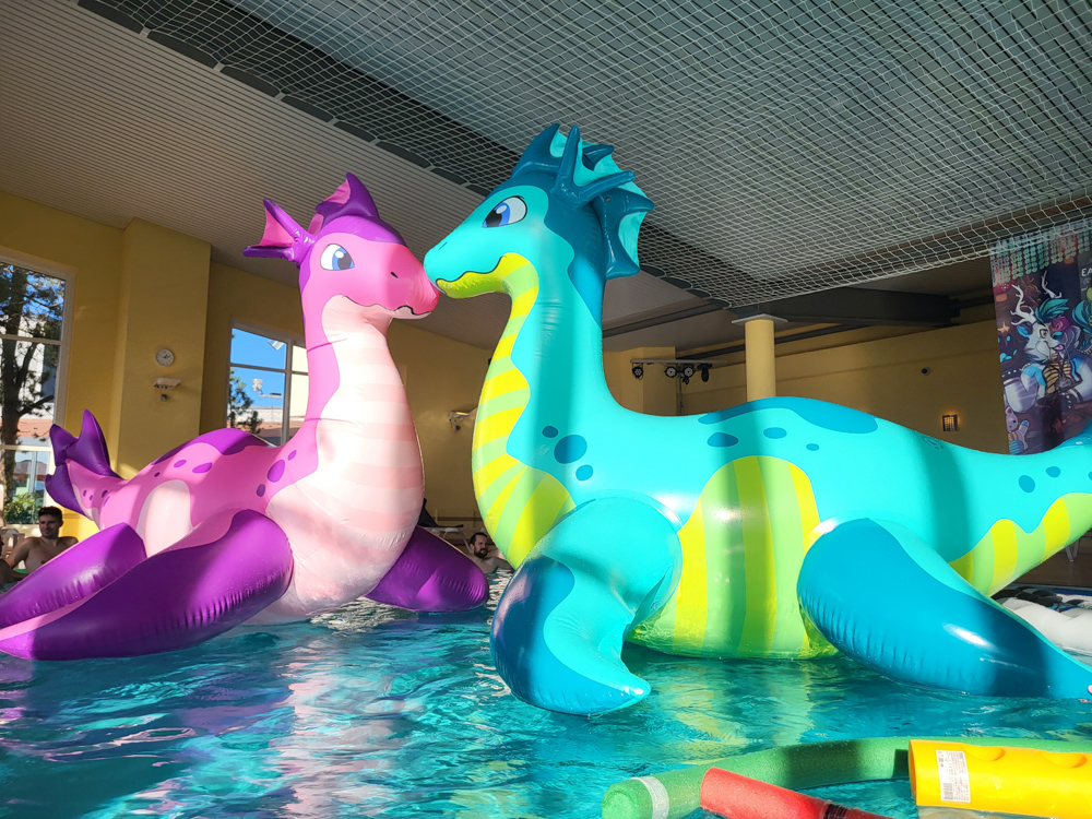 Baseball met Yotie and Henrieke took some photos. Jipho, Luno and Hiero were also there. I got out of suit soon after and packed the things for the pool. Henrieke and Mag were packing up their tables, and I met with Yotie at 15:20 and inflated my Sea Dragon. Henrieke and Mag arrived at 16:20 and we had some fun in the pool! Henrieke took a bunch of photos, and a bit later 2 other Sea Dragons also appeared!