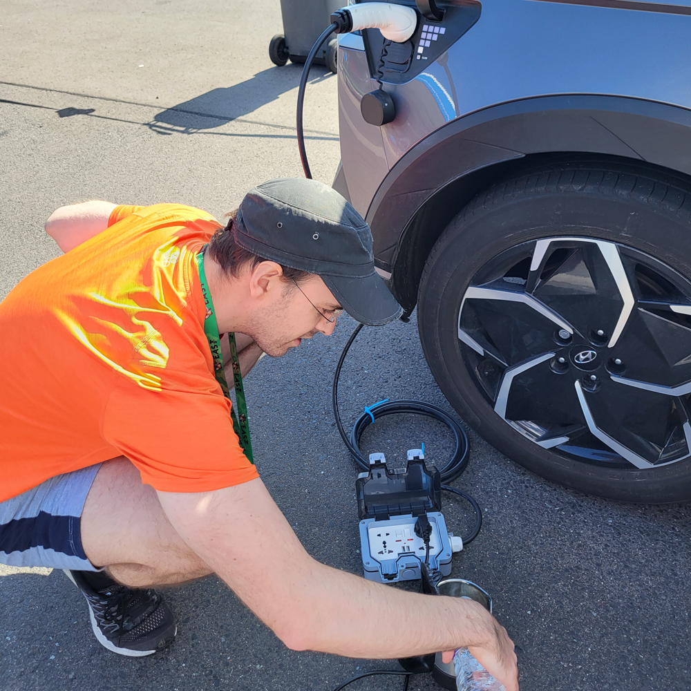 The ride was fine, we stopped to charge 2 times and arrived at the Ringberg Hotel ar 15:45. Outside the hotel we met BigBlueFox right away.