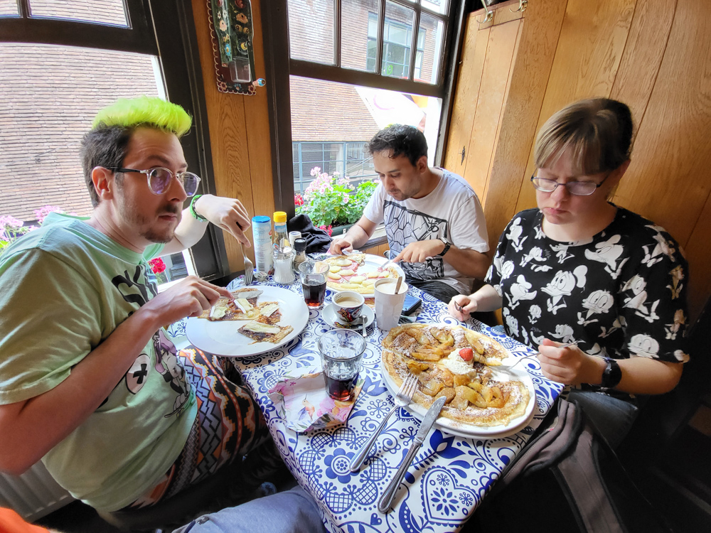 We all slept in, then went to Upstairs Pannekoeken at 14:00 with Mag, Henrieke and Yotie. Has some tasty pancakes.