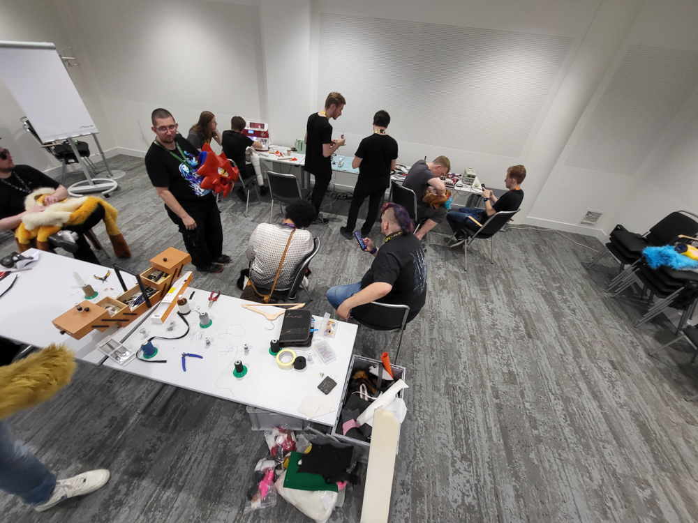 Later I helped Luno with his Fursuit Repair Cafe event, where he spends 3 hours helping people fix their suits. Having a lot of experience building suit, I could lend a hand, showing people how to sew and explaining fursuit building techniques.