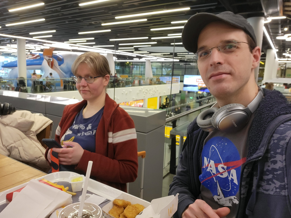 We were lucky that our flight which was originally planned to be at 10:00 was moved to 15:00, this allowed at least me to catch some sleep before the trip. I think Henrieke got about an hour of sleep. We were well on time and grabbed some lunch at McDonald's.