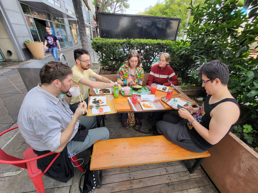 We got up at 9:00, and I decided to give UberEats a try for ordering groceries, since there was no supermarket within walking distance of the convention center. I picked it up at 9:30, it all worked out well. I went straight to the saturday morning cartoon breakfast, which Mark Merino organized. It was basically people hanging out and watching cartoons, sounds like my kind of party!