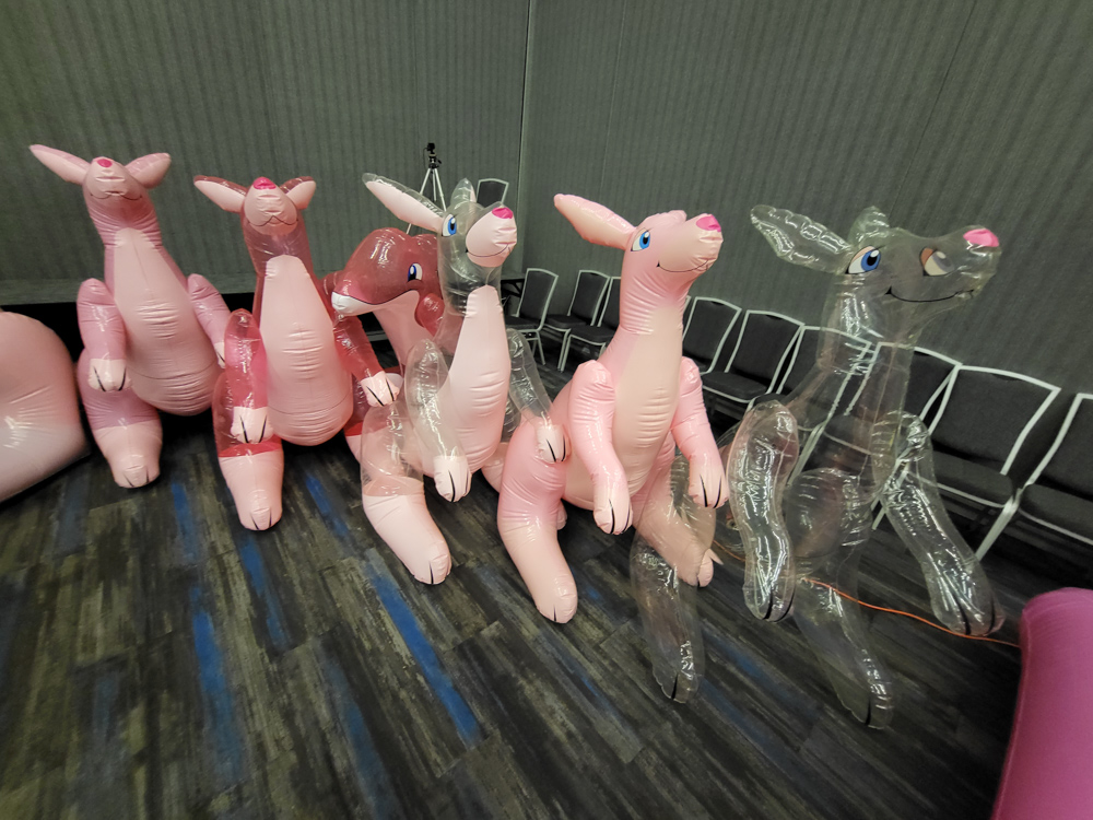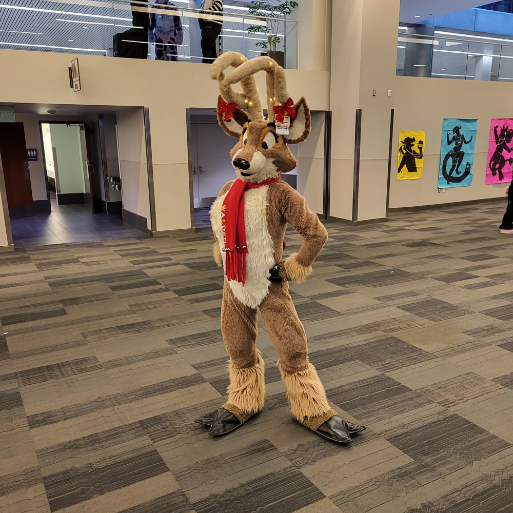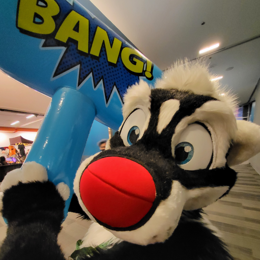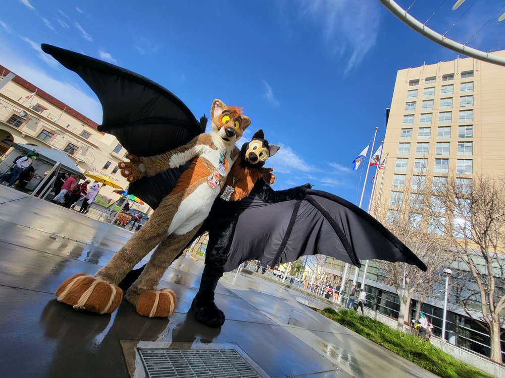 I went to the room to dump the groceries, Henrieke went to the Dealers Den in the meanwhile. Duncan was on our room getting ready to go to the parade with Byte. I waited for Henrieke to help me with putting on wingy Baseball, this was the first time I brought the bodysuit with the giant wings. It was a bit risky since the inserts and Delrin rods were too long for the luggage, so I had to bend them to fit in the suitcase. It all worked out luckily and the wings had straightened out by the time I needed the suit. Eligecos also suited up, and we went down for the parade. The parade had already started at the time, so Baseball joined the in-progress parade only to find out that he joined only a few meters from the end. So he went upstairs to do the full parade, where he met Torchi and Cami. There were lots of people watching the parade and taking photos and videos. Baseball also ran into Foxo, who really enjoyed seeing him!