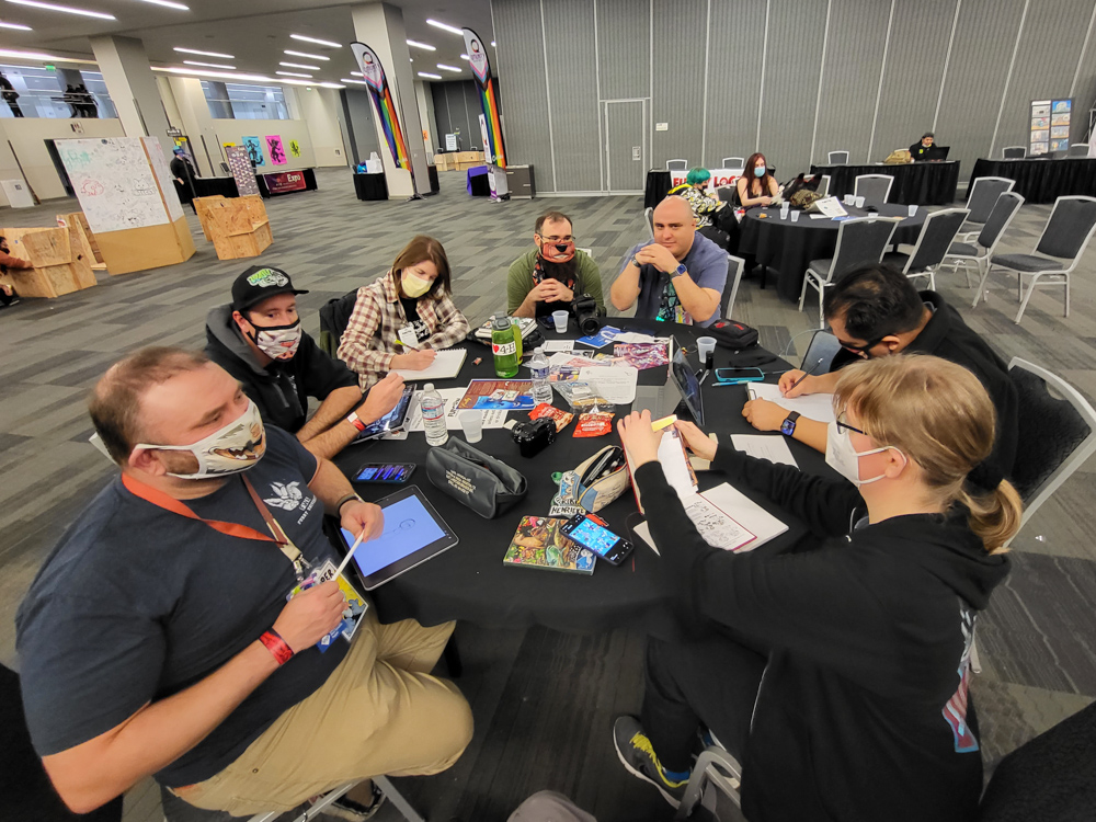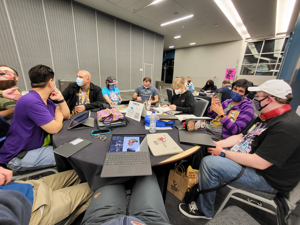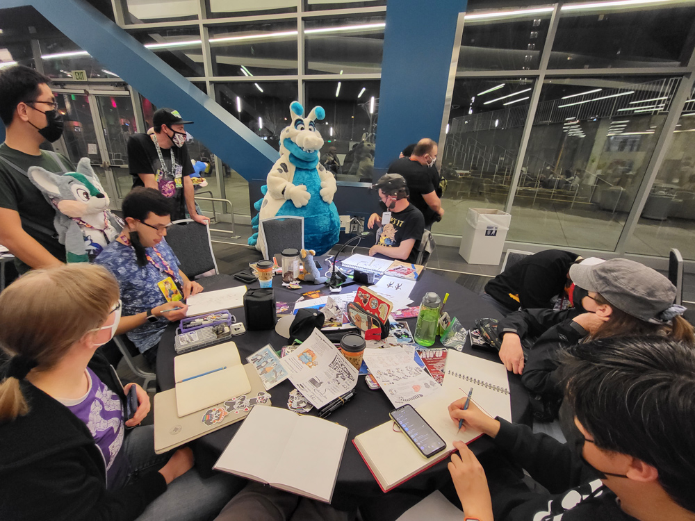 Then we went to the downstairs are to see if there was any art jam going on. We met Walden there, also Dax and Latte! We chatted a bit and made plans for after the con. Sadly Dax would likely be in Seattle when we would be in San Jose again.