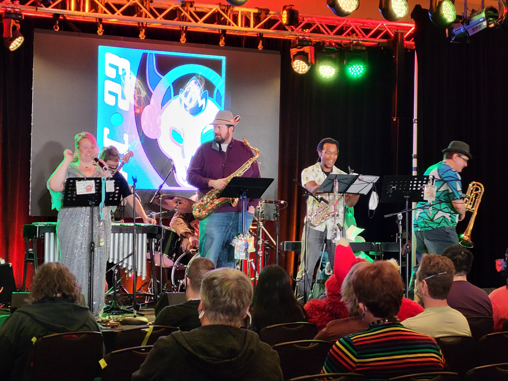 After that we went to the Jazz Concert by the amazing Mascha and the Swinging Tails. It was great as always and we stuck around until the end, where we met Paco, Furahi, Croc and Bacon. We chatted a bit longer with Paco and Croc outside the ballroom. I returned Tachi's sketch book to him, we alsoran into Brokken. I went to the room a bit to lie down at 19:00. A bit later I went downstairs to check out the "Night Market", but the line extended all the way into the Hilton, I did not feel like waiting that long just to satisfy my curiosity.