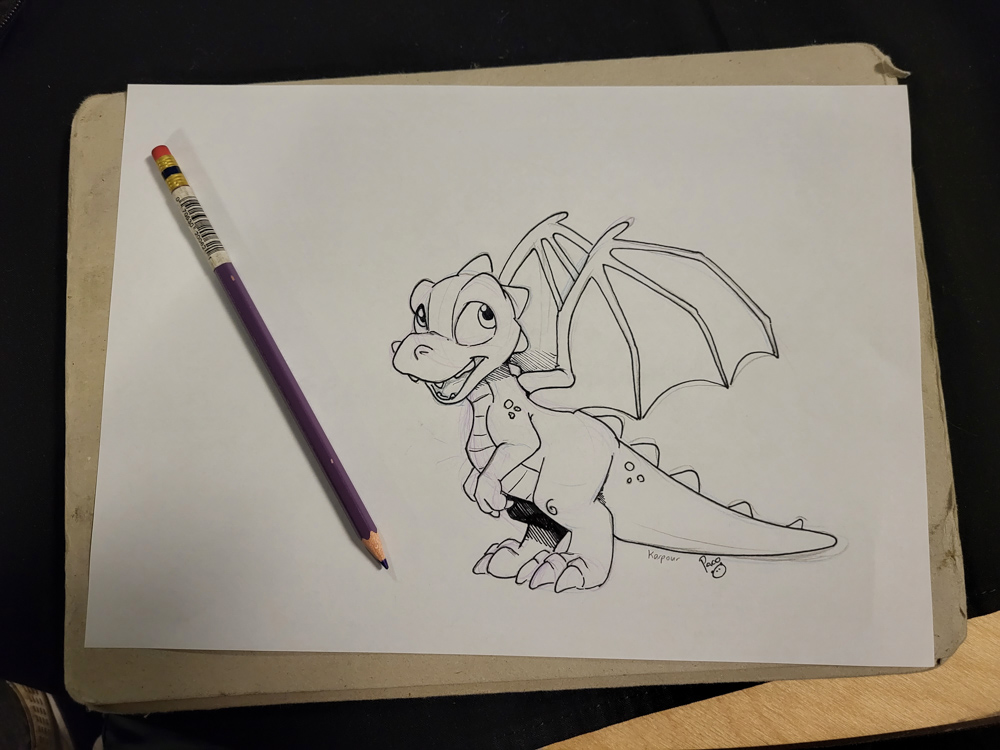 Walking around more, I met Tachi, Scruff, Kaycee and others, and we sat down at the downstairs tables to art-jam. I did a trade with Zahzu.