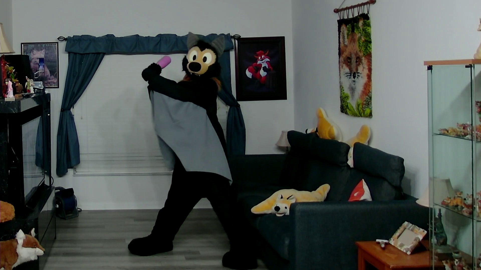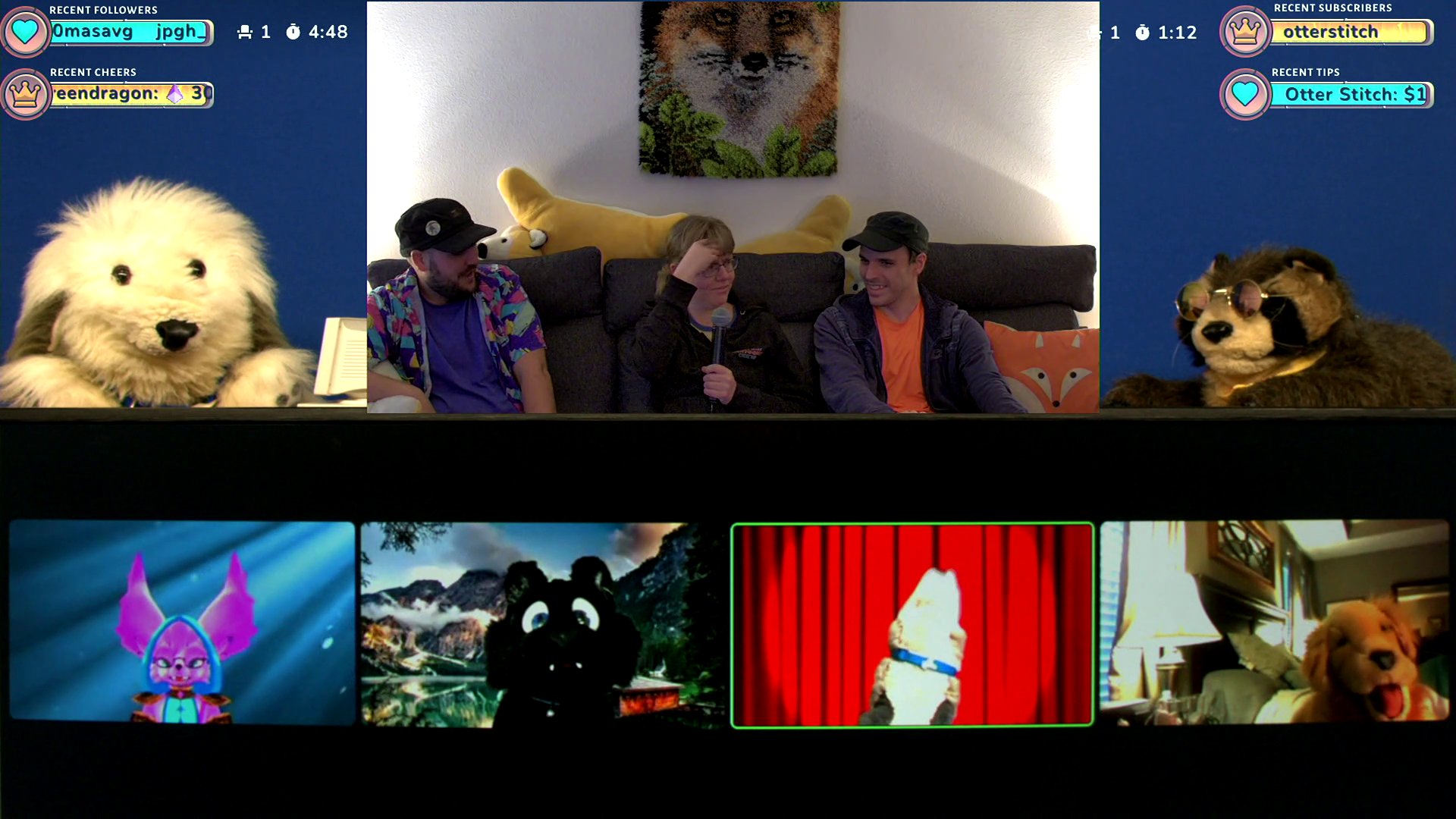 We slept in a bit today! Kuddlepup came by, as well as Firr. We hung out for a while and chatted, and we gave Kuddlepup a whole bunch of tea that we brought for him. Later Firr gave us a ride to the Funday Pawpet Show. Herbie and Yappy were at the show in person, and Atkelar, Kuddlepup and Poink were remotely joining. We got interviewed, made Yappy and Herbie try Dutch snacks, and Baseball did an old-fashioned subservient bit. It was really fun to be on the show again after 10 years!