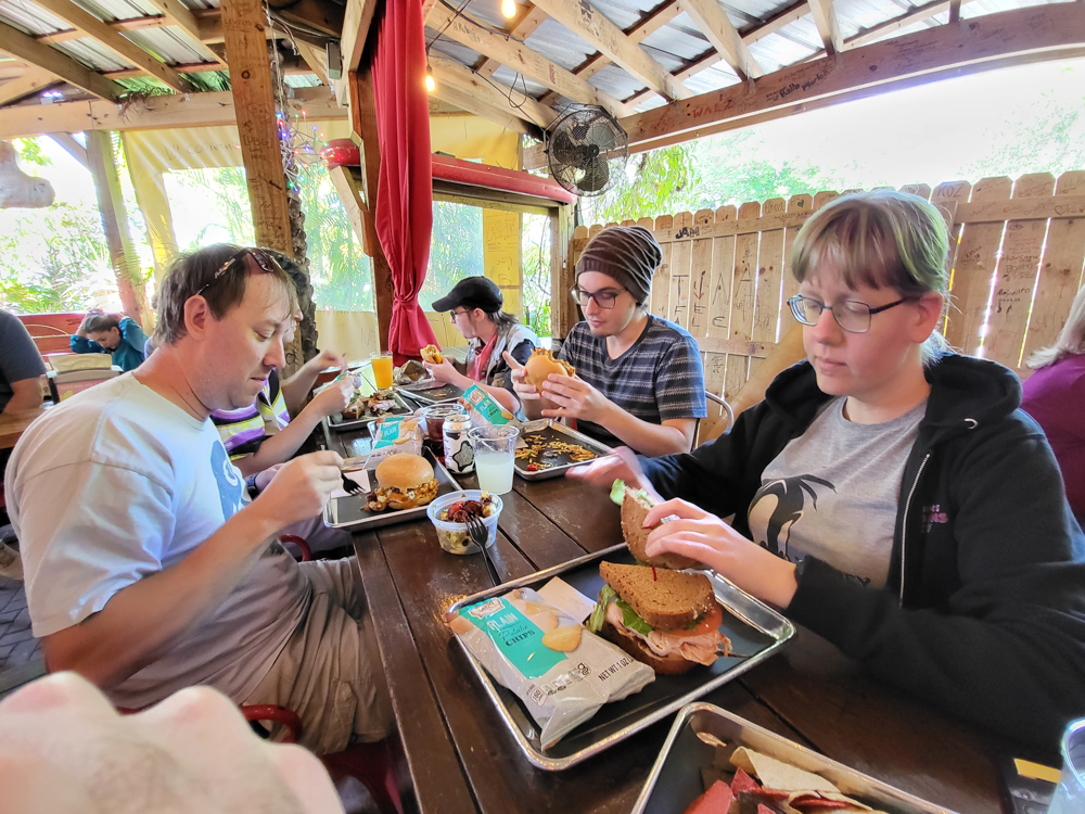 We got up at 10:00, sadly going to Universal today didn't work out. Wolfbound and Robin came by, and we went to the Yellow Dog Eatery to get some lunch.