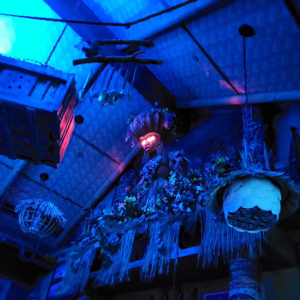 We were very tempted to get the Figment figurine at the Art of Disney store, but resisted. We browsed some more shops and I picked up a tasty latte at Starbucks. Then we went to the Tiki Room to get some Dole Whip floats and watch the show.