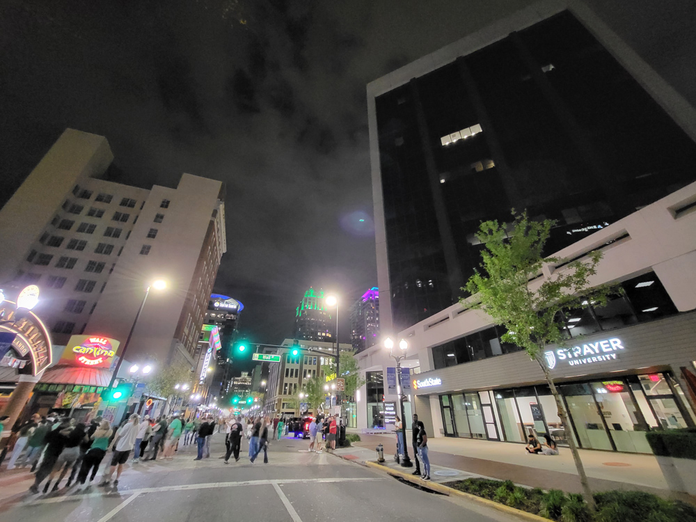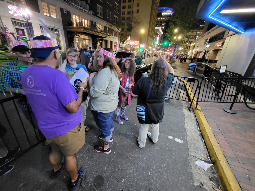 At 16:30 we headed to downtown Orlando to queue for the TMBG concert, which was busy with people getting drunk for St. Patrick's day. Henrieke and Ras met some friends in the queue.