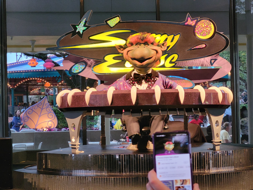 Trigger and Chorca left to see a soccer game, and Henrieke and I continued to Tomorrowland. We did the best ride there, Carousel of Progress. Also the Peoplemover. We checked out the shops, and I got to see Sonny Eclipse playing the keyboard.