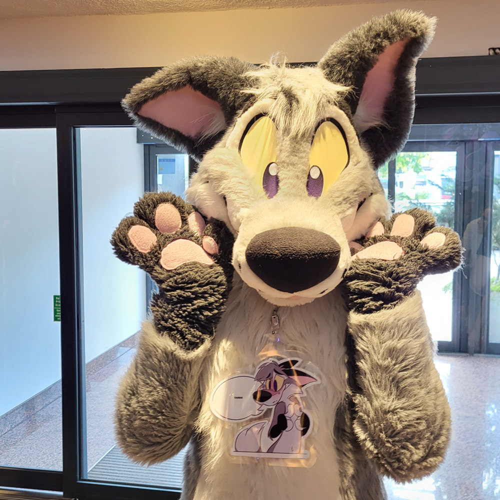 We went to the hotel around 10 and were greeted by Nico in his new fursuit that Spikie finished the day before.