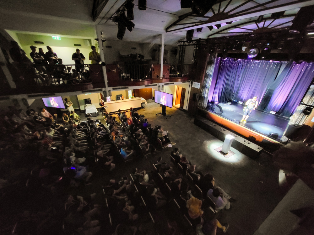 Henrieke and I queued for the closing ceremony with Goddy, and with a lot of luck, we even got some seats on the balcony. The ceremony was fun, it was about 30 minutes too long though. The charity total was a respectable (roughly) 5000€ and the mystery was concluded. The theme for next year was announced, and everyone applauded around 50 times during the ceremony, mostly for a chair.
