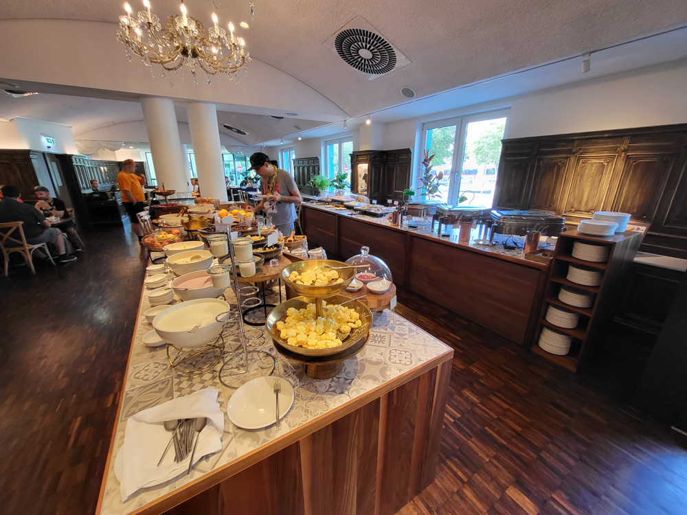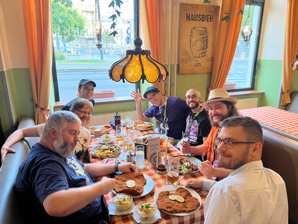 I had a schnitzel the size of Liechtenstein, it was really good but there was no way I could ever finish it. We went back to the hotel and set up our Dealers Den table until 22:00, then we brought the empty suitcase to Tabbie's room.