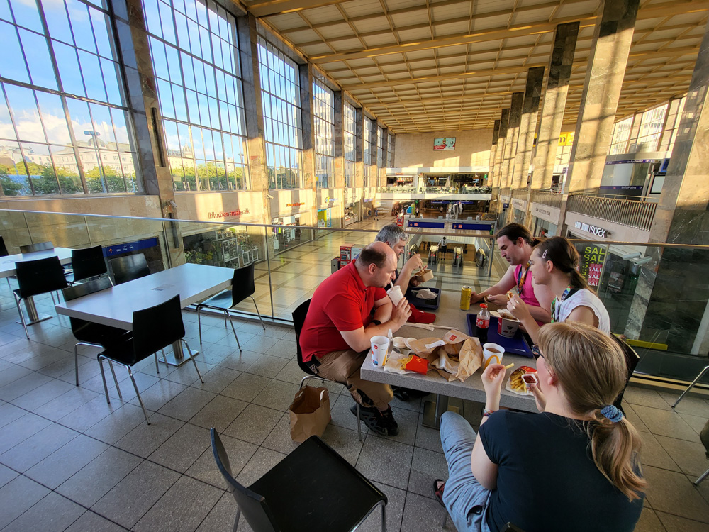 We checked on Tabbie and Nico, but they were in a food coma. Then we went to Westbahnhof to grab some food with Yamavu, Atura, Shorty and Goddy.