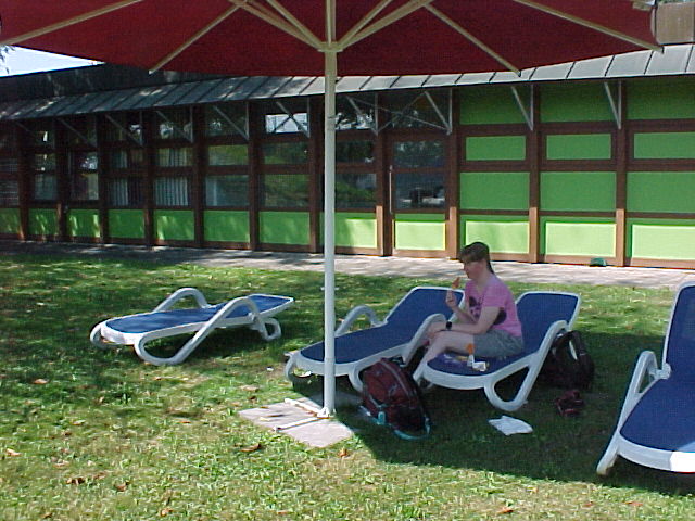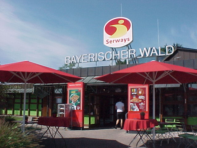 We stopped at the rest stop "Bayerischer Wald" for a while. They had nice pool beds outside so we rested a bit there and had some currywurst and popsicles.