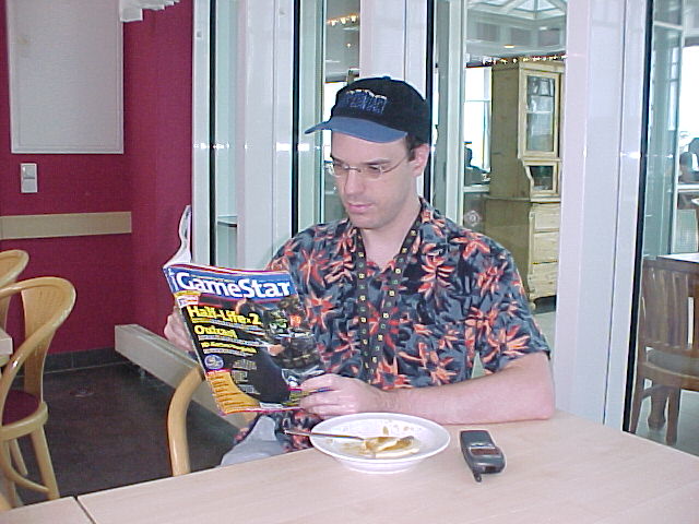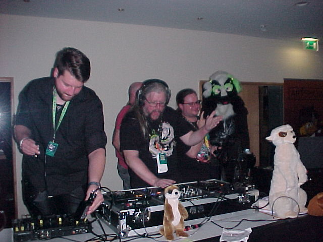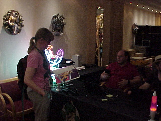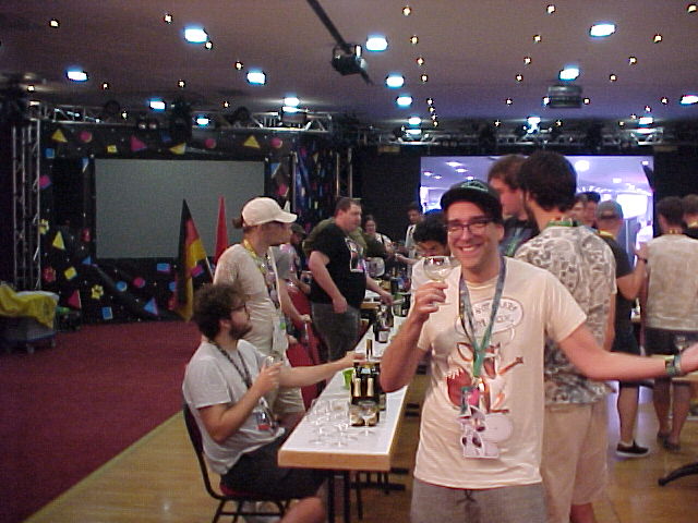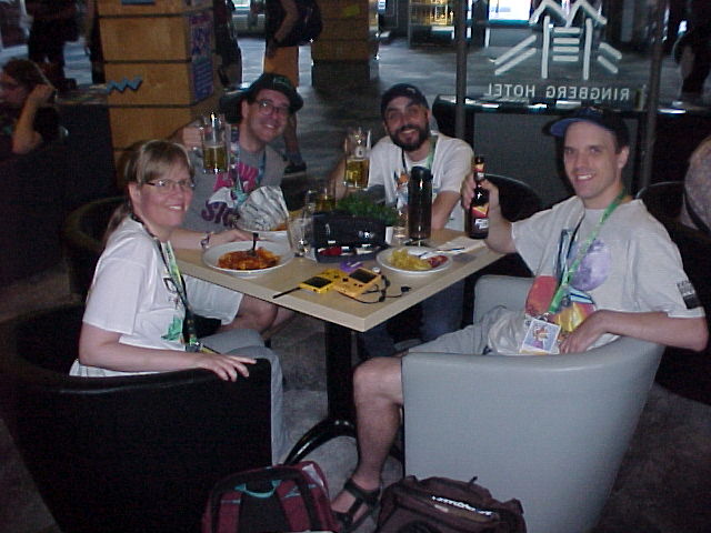 On the way to the game room I ran into Zefiro. In the game room I met Flake, Eiliko and Fitz. Flake ran a thing where you could borrow a Sony Mavica and fill a floppy with photos, a super cool idea! I had my own Mavica with me of course!