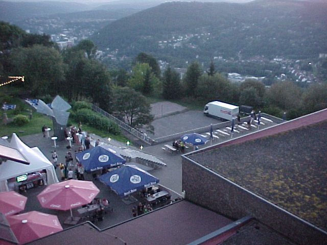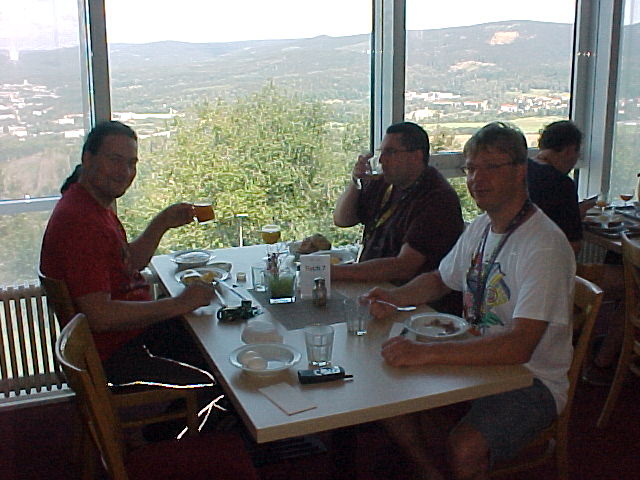 I finally got some reception with my Nokia 7110, turns out being on the top of a mountain doesn't mean you get a great signal. Henrieke went back to the room and I crashed the table of Zefiro, Mendra and Schma. We talked about technology and Linux (a really promising new OS) for a bit.