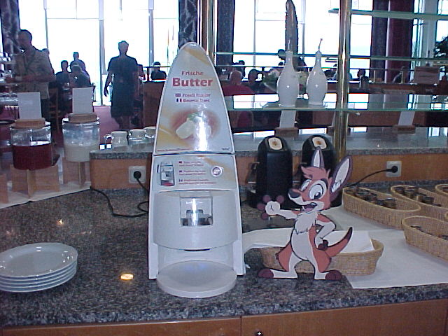 We got up at 10:30 and had some breakfast. Can you believe it, the breakfast buffet is open until 12? I wish all conventions had this. I said good morning to Krauti and Henrieke and I got ourselves some tasty American pancakes from the automatic pancake machine.