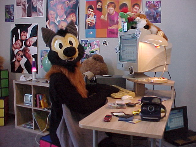 The weather was perfect and many people from Suhl came to see the parade. At the end, a group photo was taken. I met Shorty there, also Tabbie and Nico. I took some more photos, then Baseball and I went to our room. Shorty dropped by and I took some photos of him and the Herbert plush by Eligecos. Then I transferred some photos from my floppy disks to my laptop.