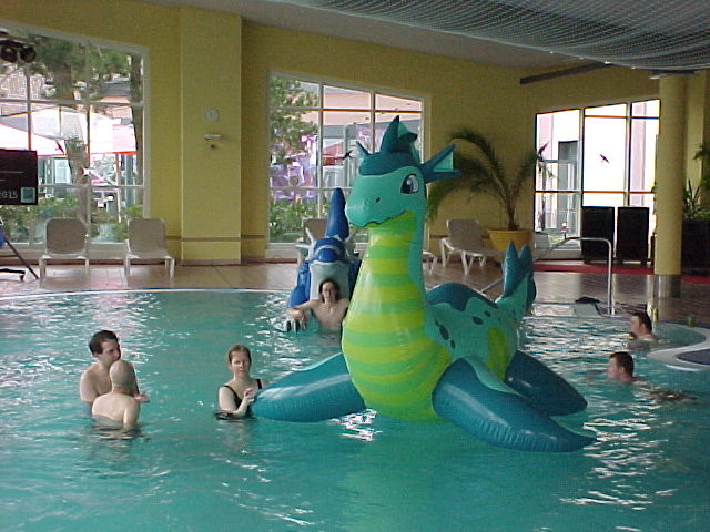 Tabbie, Nico, Henrieke and I went to the super nice Ringberg pool, one of my favorite things about this hotel. I inflated my Sea Dragon and Dolphin and we had a nice time. There was also a music playlist where you could put requests in again, so I requested the Digimon Theme!