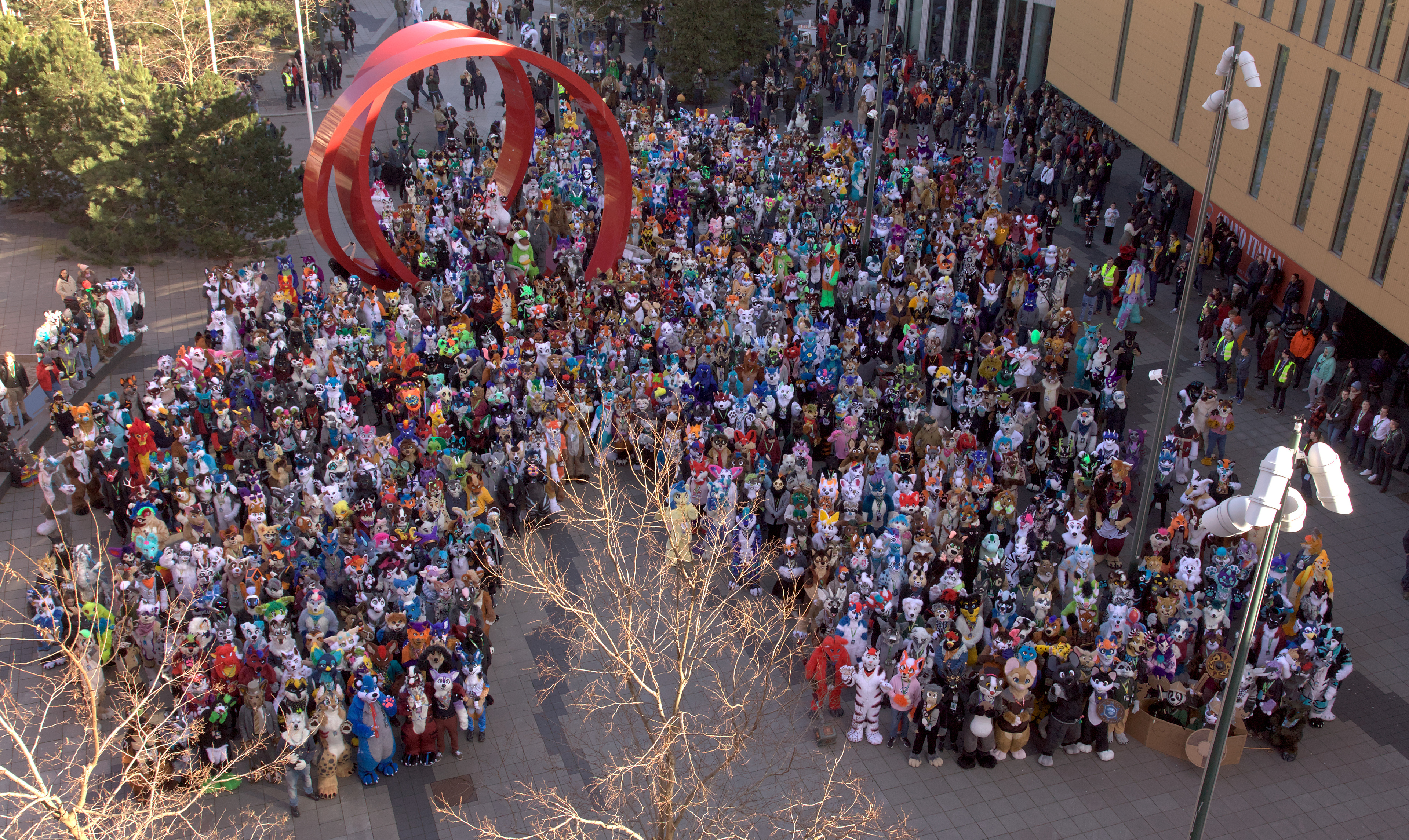 We got up at 10, I didn't sleep too well, the AC in this hotel is so bad, every morning I feel like I'm a raisin. I went to breakfast with Henrieke, it was very full but we managed to find a seat with Procy. We went back to our room and Koidel came by for a bit. I suited up and went to Koidel's room, where he and Kazan were suiting up. We went down to the fursuit group photo together. Sadly it took very long to get it started, but after 50 minutes of waiting it finally happened. While waiting Baseball met Hai and FlintGlomcat, and got a photo together with Neop and Chiros.