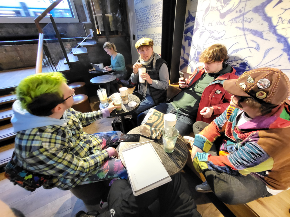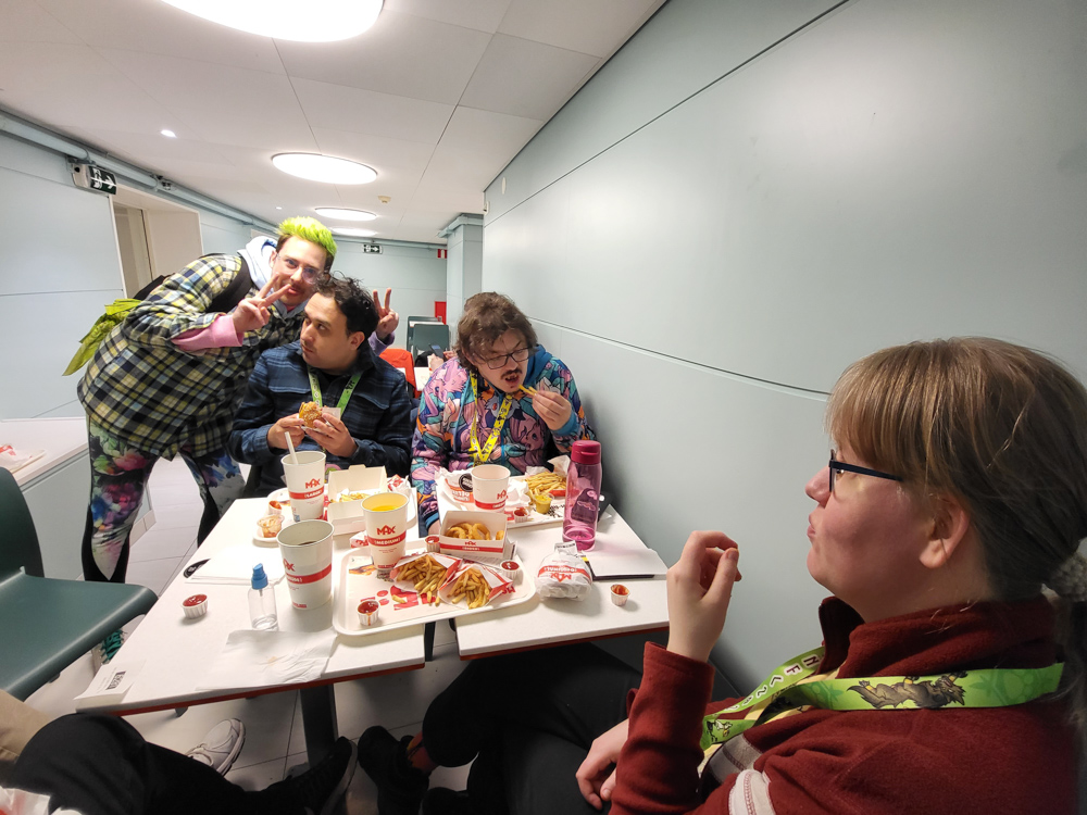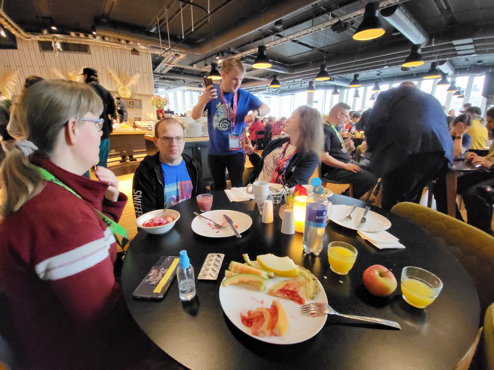 We got up at 9:30 and went to breakfast. I met Bagel and Lempi there, they were just about to leave though. They left us their table though, which was appreciated as it was super busy! Pinky, Sniffer and Trax joined us. We talked about charity stuff, Atkelar and speedrunning.