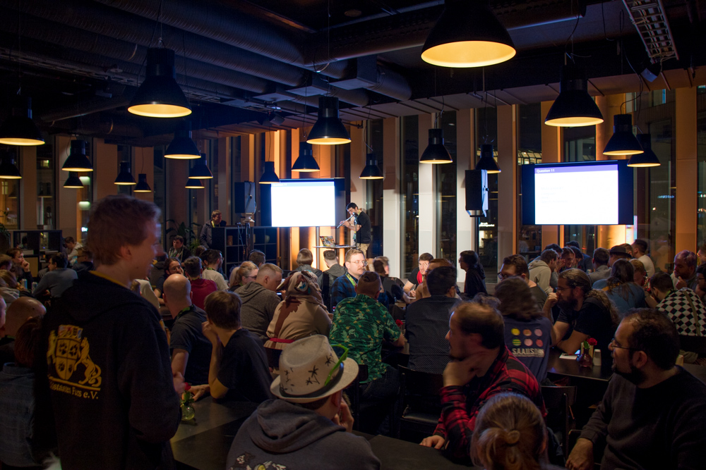 By the time the opening ceremony started, the others were too hungry and went to grab some food, so I just watched the opening ceremony with Henrieke. We had some cup noodles for dinner, and at 21:20 Skippy came over. We went downstairs and stood in line for the also-delayed pub quiz. I've been really looking forward to this event and assembled an all-star team of nerds with a broad knowledge in hopes of winning this time!