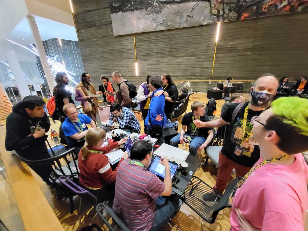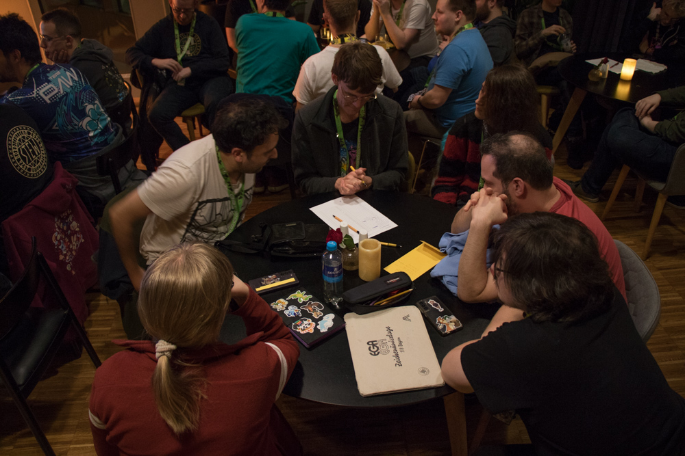 Henrieke went to grab some food with Koidel and others, and I stayed there drawing 5 commissions. After a while I went back to the hotel. We wanted to see the opening ceremony on stage, but the line was hopelessly long, so we went to our room instead and invited friends. There was a one-hour delay so we used that hour to play some Jackbox, in the end it was a wise decision not to stand in line!