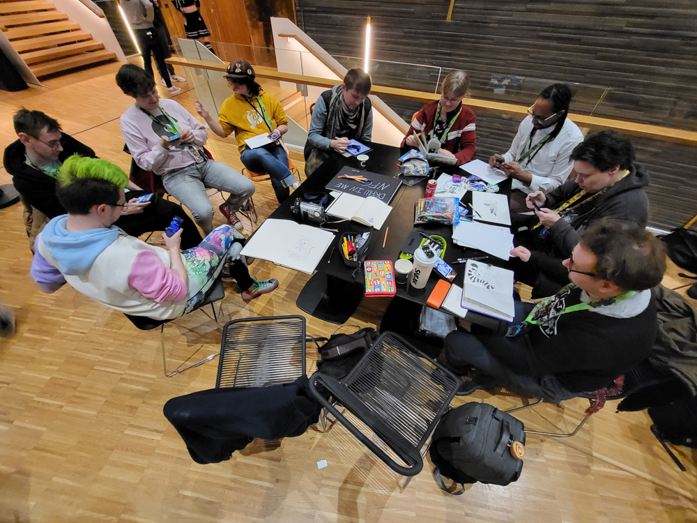 We went straight to the Artist Alley, which was a big hall of the whole complex. It turned out the building used to be a slaughterhouse. There was a free spot next to Koidel, so I spread out there and took some commissions. I wasn't sure at first if people would even find me, but in the end there were more people who wanted commissions than I could draw!