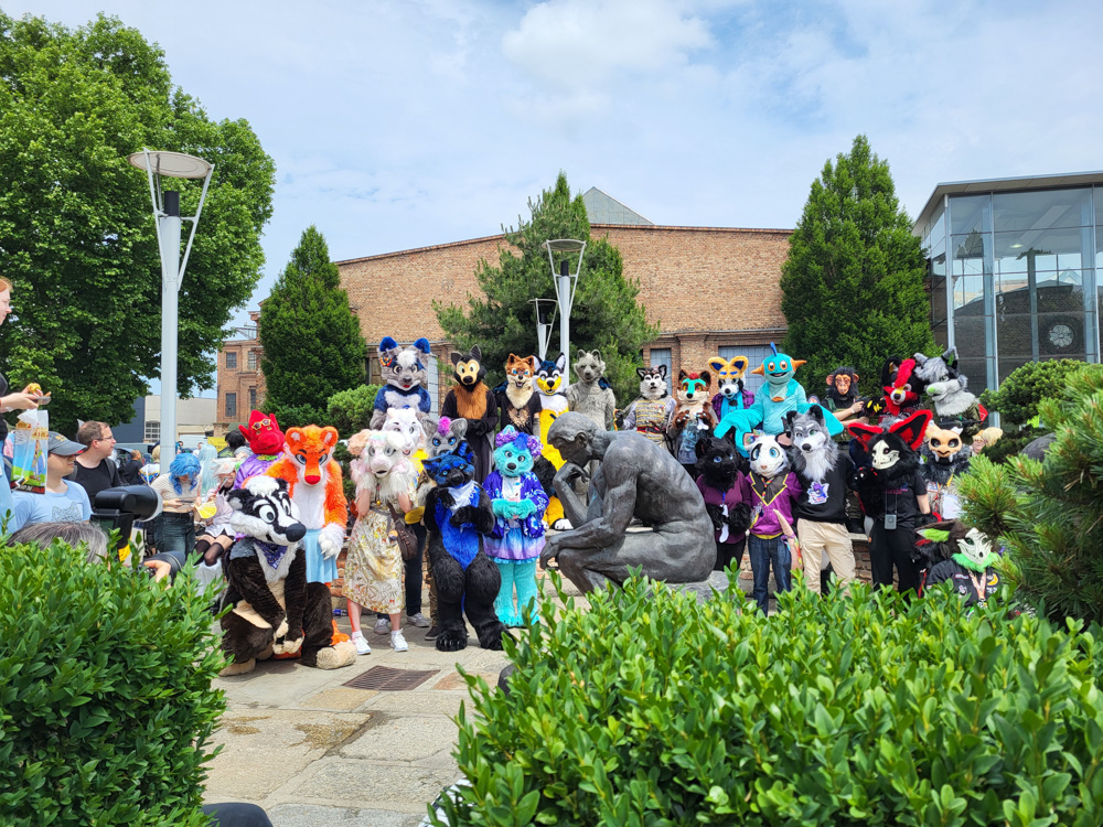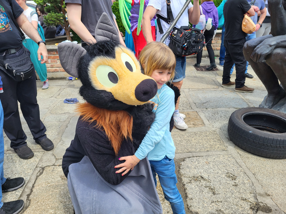 We got up and met with Tim, his wife Dorien and Ulrich Schröder at Intercity Hotel, where they stayed. We called 2 Ubers and went to MetaStadt, where Comix took place. Henrieke set up her table, and I put my fursuiting stuff in the Fursuit lounge, organized and maintained by Goddy!