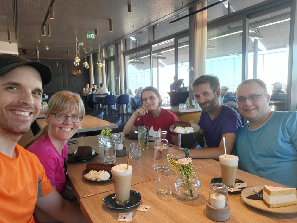 The others went to Volksgarten to get some drinks, I took a citybike to meet up with Henrieke and the others. They decided to try to go on top of the Haus des Meeres, a sepcatular aquarium in the middle of Vienna, inside an old anti-aircraft radar tower from WW2. There is a very nice café on top, where we had some Sachertorte and coffee together.